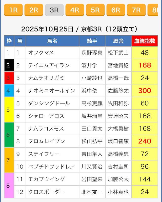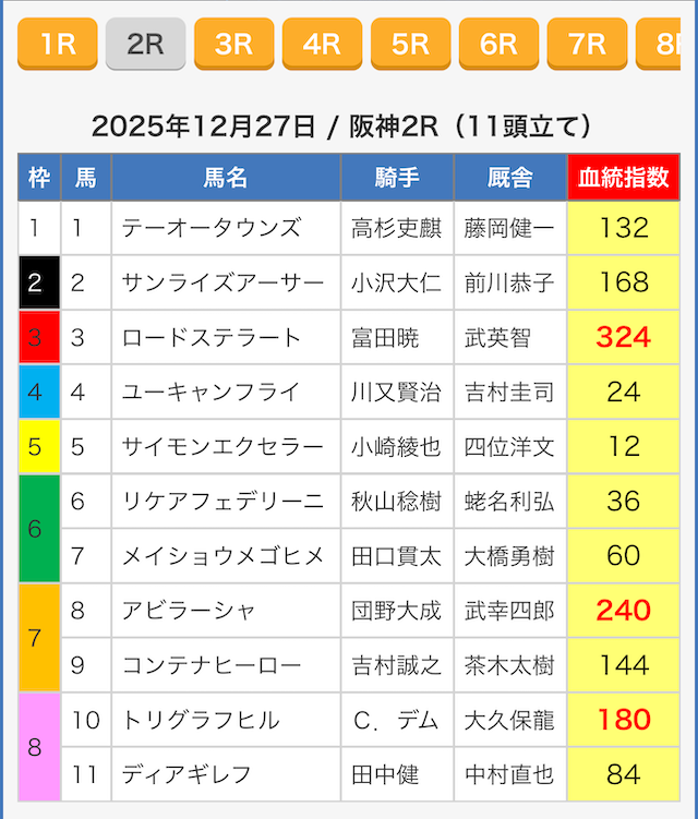 なお、今回の検証で取り上げたレースは以下の通りです。