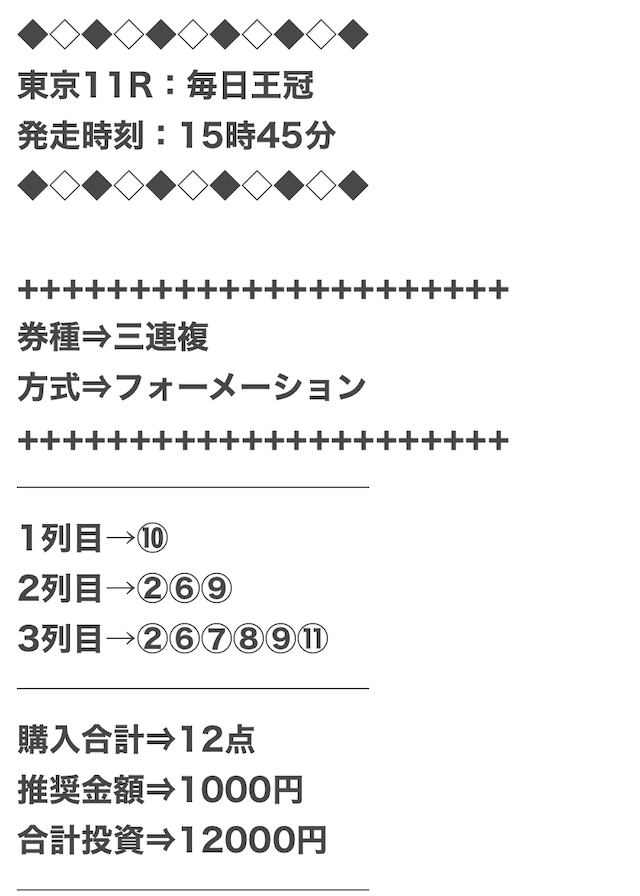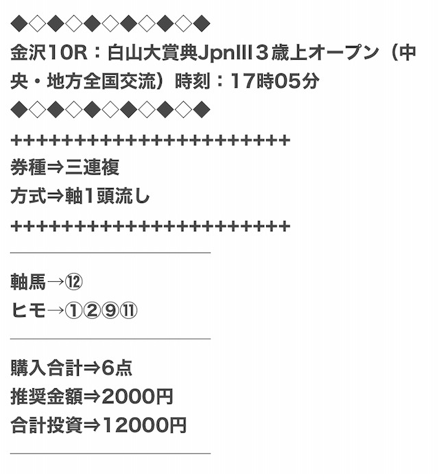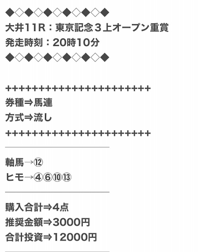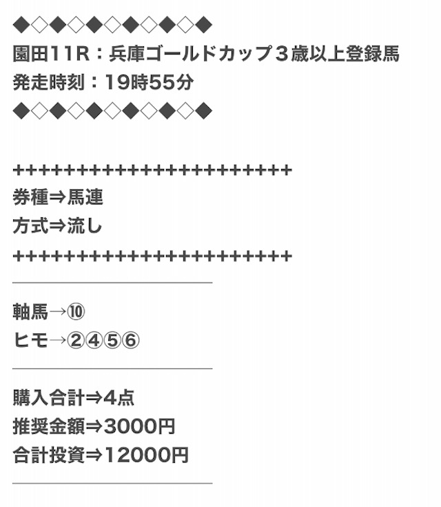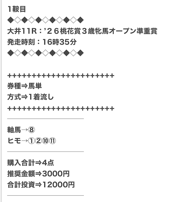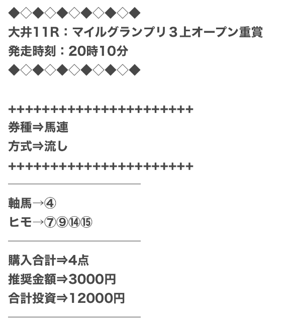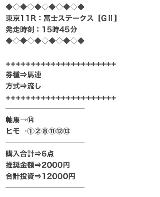 情報と分析力がすごいのか、結構あたる。穴馬選びも美味いから払い戻しが美味い。