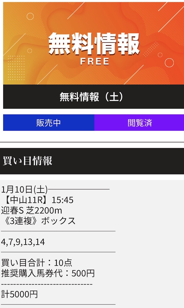 有料予想であんだけ当たると無料予想だけだと物足りなさを感じる。