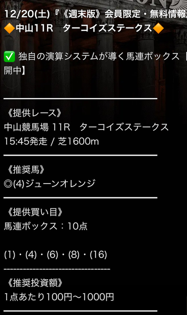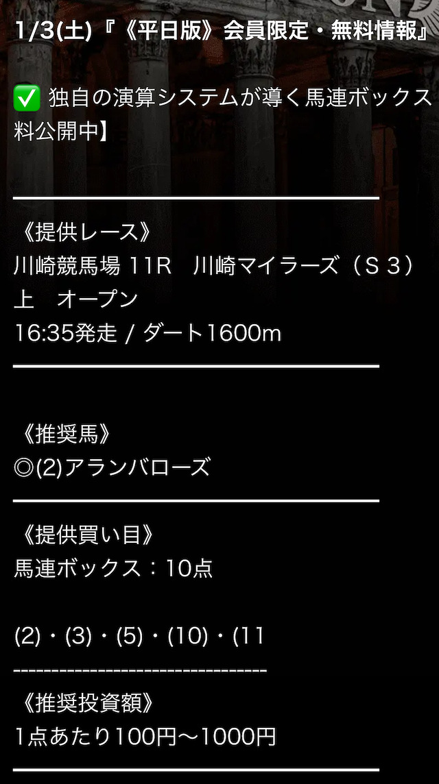 無料予想でも10万円を超える払い戻しを獲得するなど、短期間で大きく稼ぐ事ができます。