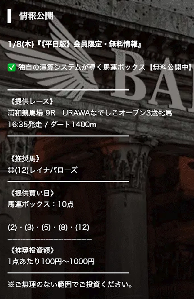 バビロンは、爆発力のある予想を提供している競馬予想サイト。