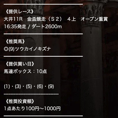 | 戦績 | 2戦2勝0敗 | 的中率 | 100% |