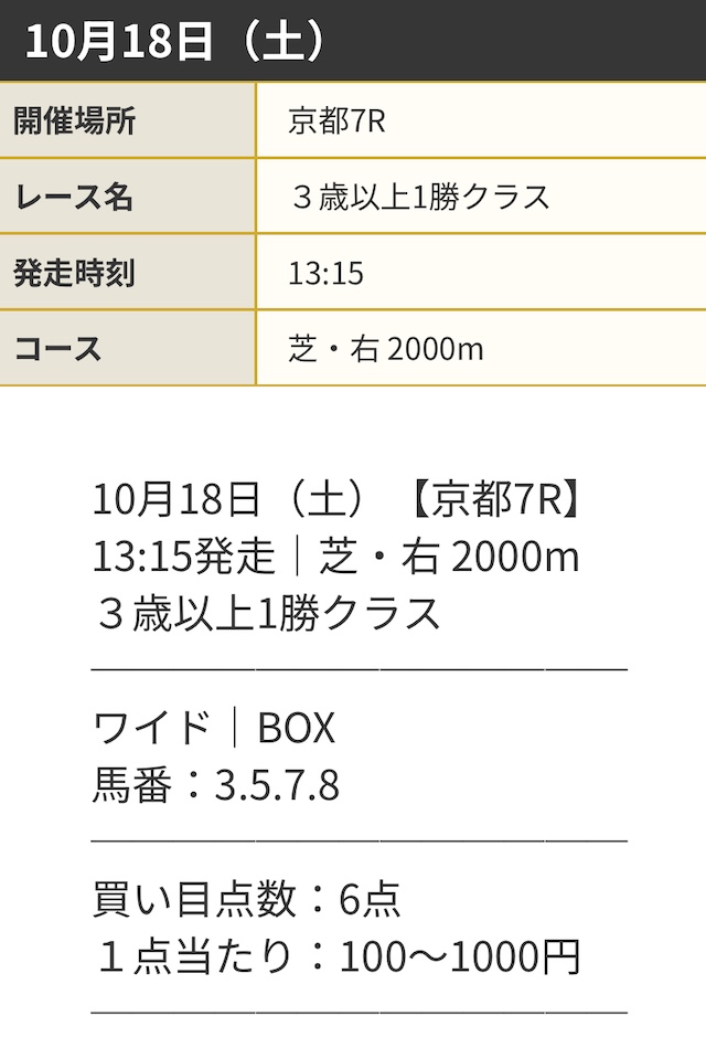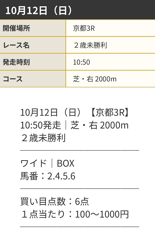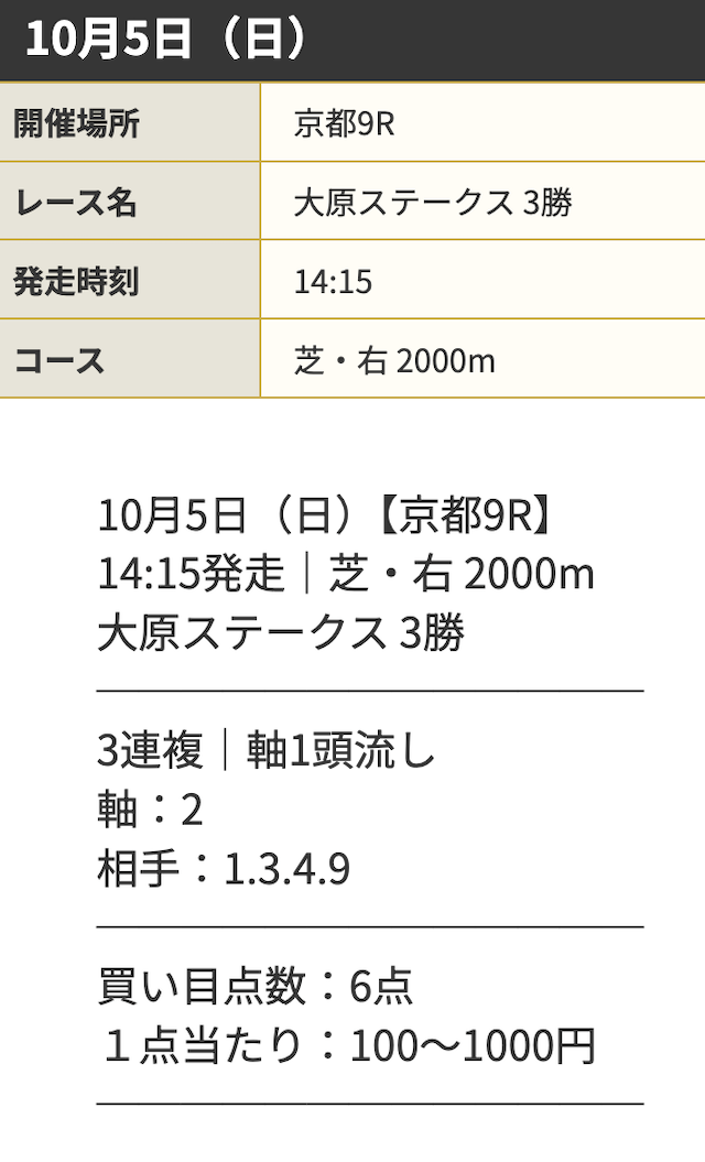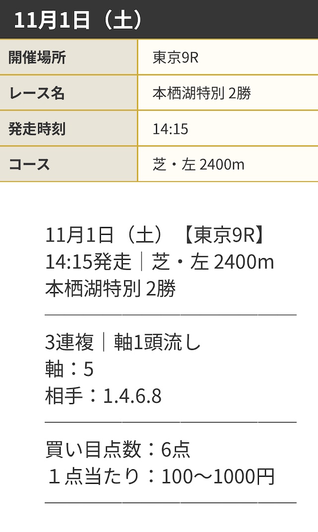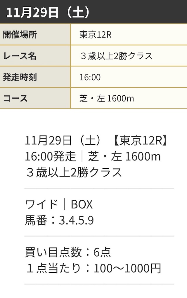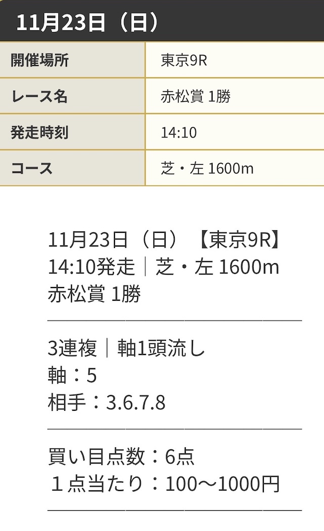 6点以内という少点数で勝負しているのにも関わらず、難易度の高いレースを次々と的中。