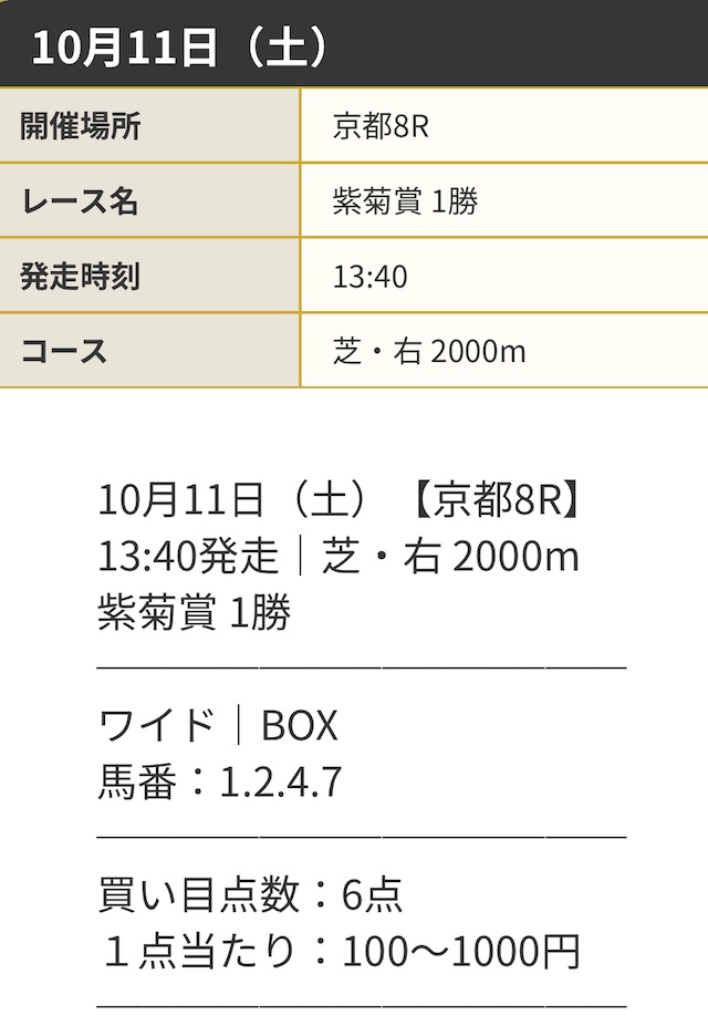 点数を最大限に絞って難易度の高いレースを読み当てているため、多くの利益を得ることが出来ます。