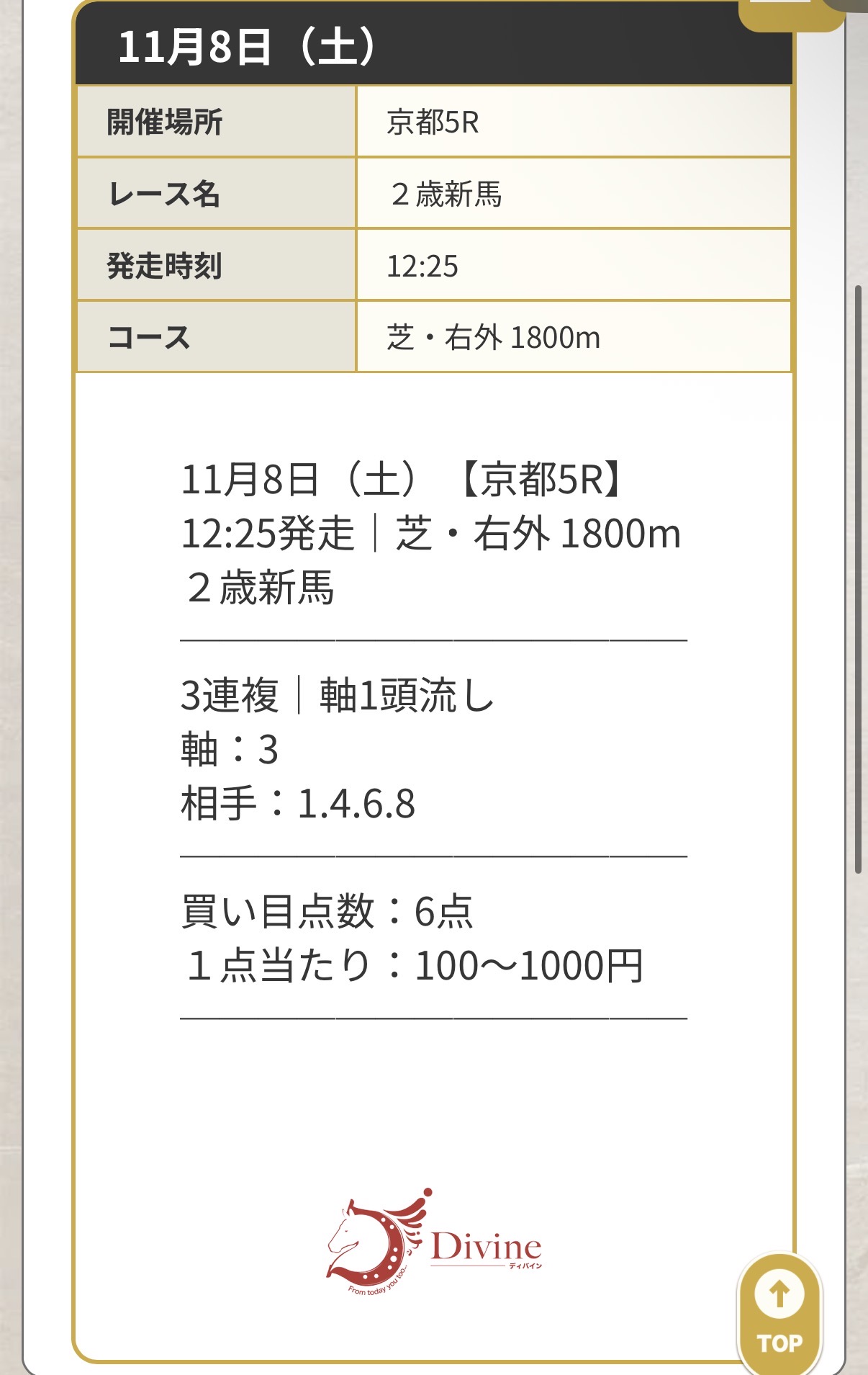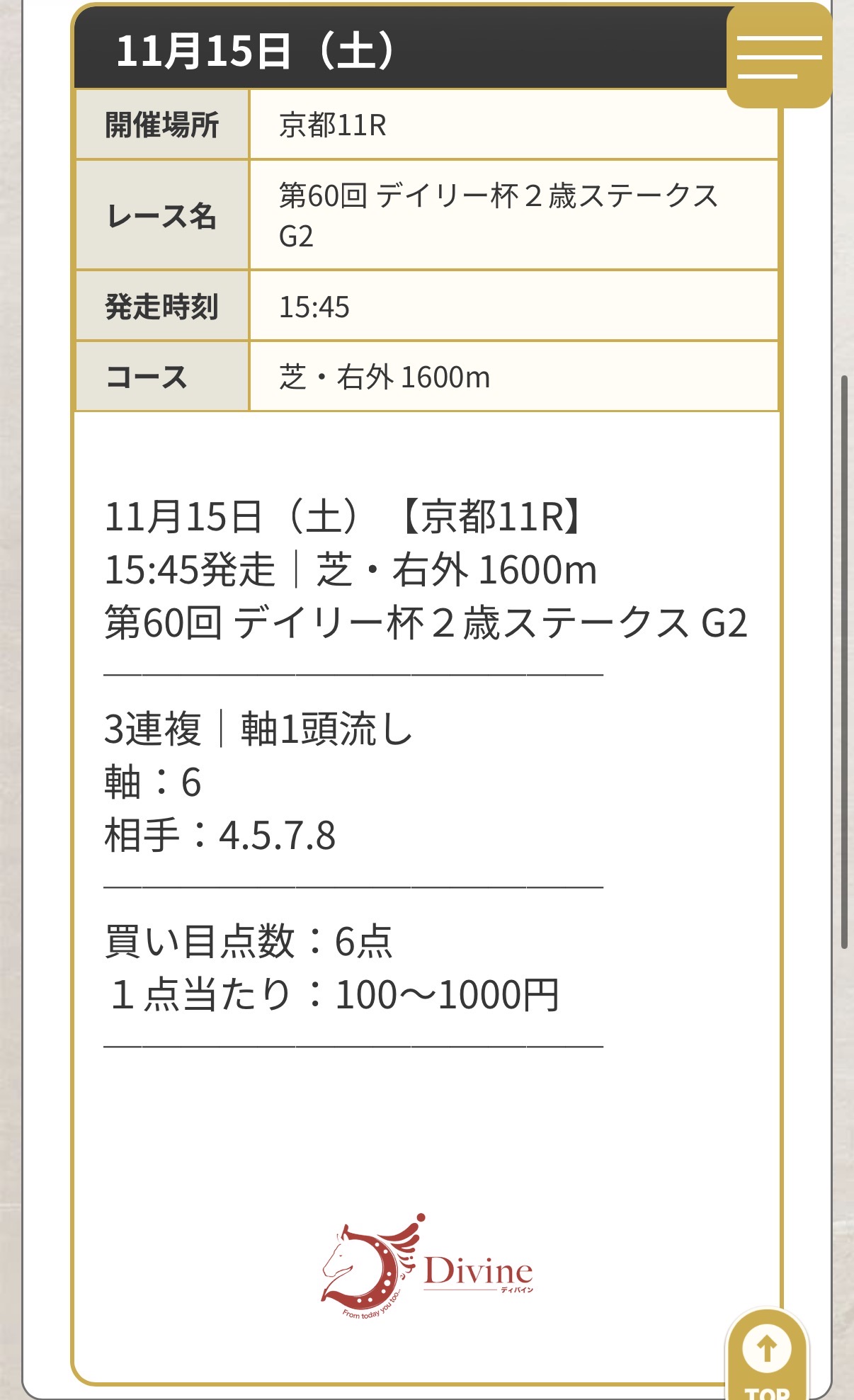 重賞レースの予想が結構強い印象ですね。とりあえず毎週ディバインの予想に乗らせてもらってます!