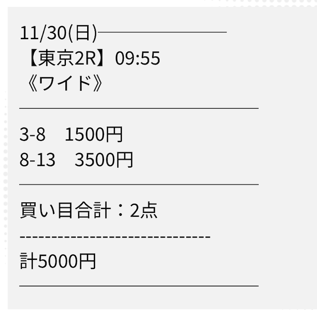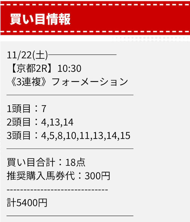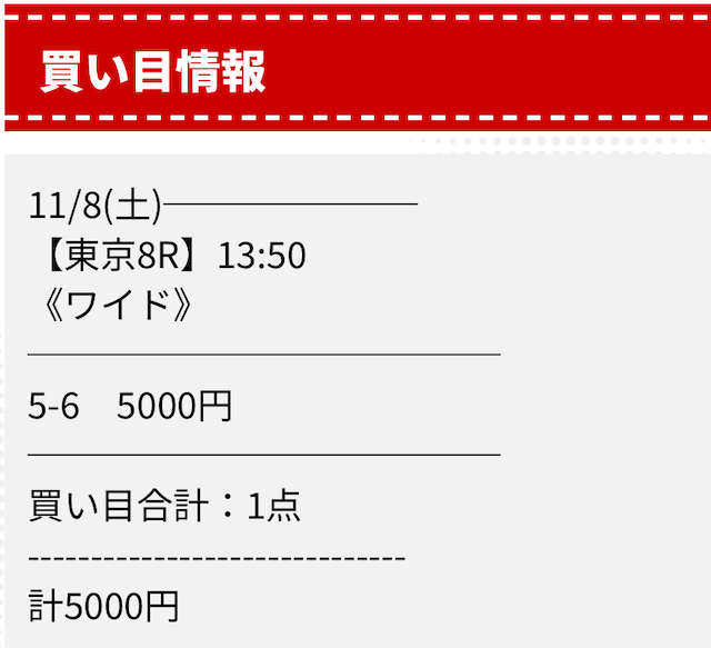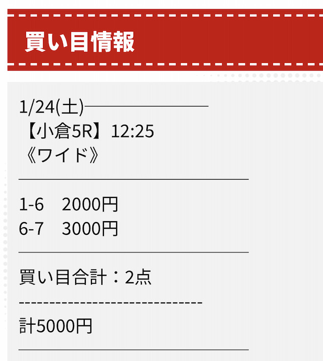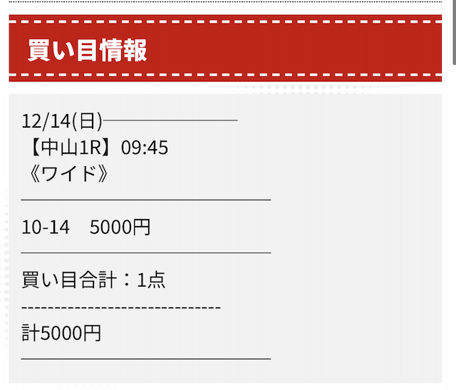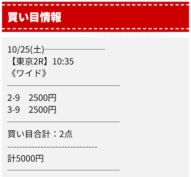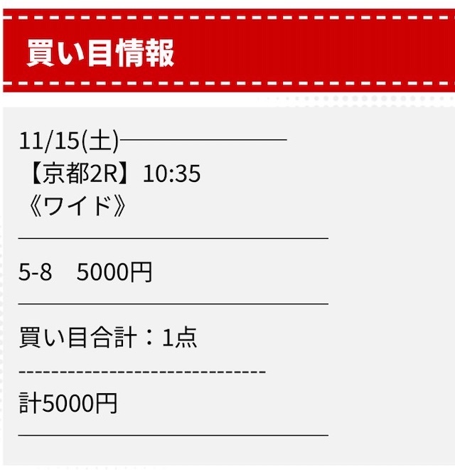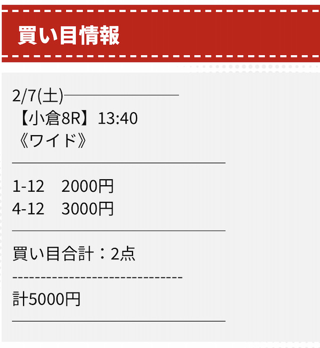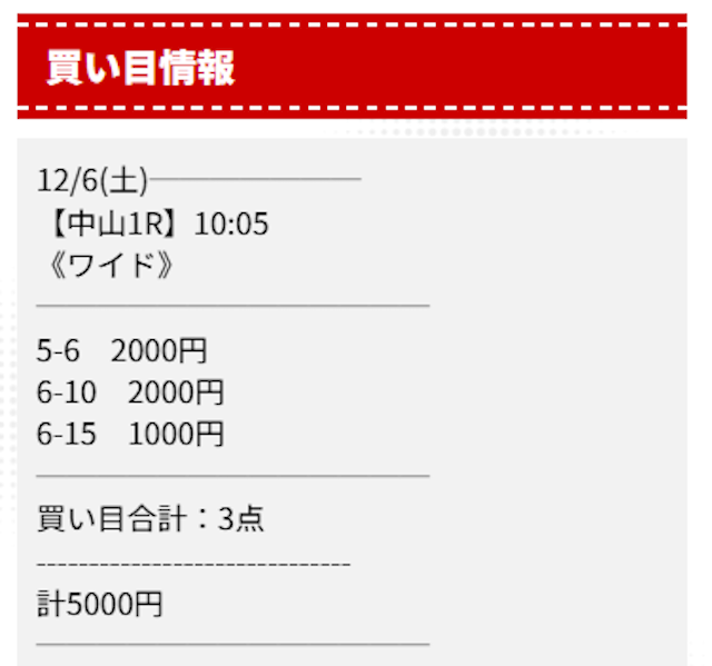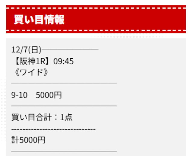 収支-100,000円 - たった5回の参加で+23万円。的中率も圧倒的で信頼のできる内容になっています。結果負けてしまいました。途中調子が良かったものの、不的中が続き、残念な結果になりました。