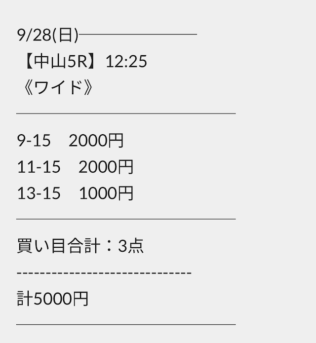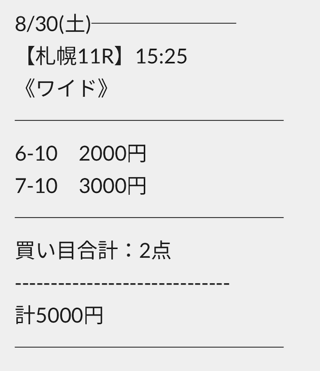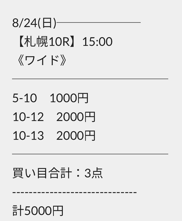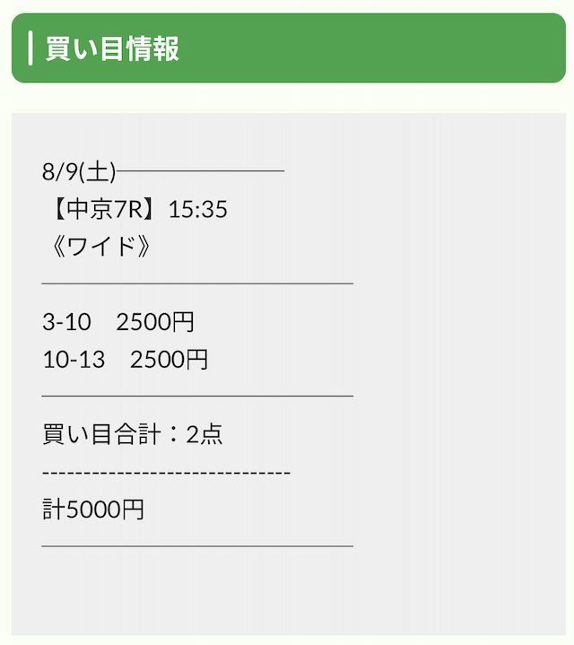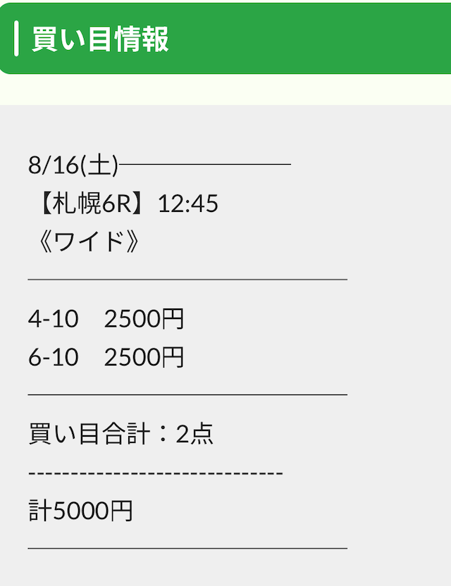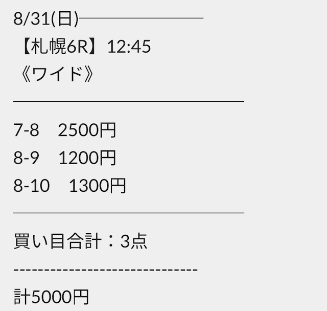 券種が馬連・ワイドのため、稼ぎづらいと感じる方はご自身の予算に合わせて調整するのも1つの方法でしょう。