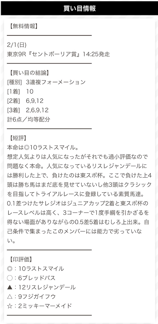 無料予想がかなり良かったから有料予想に参加しようと思ったけど、数が多いからどれにするか決めれないです。