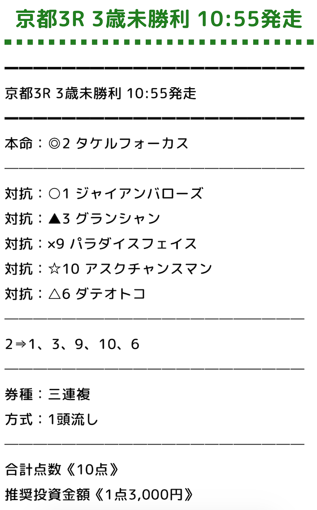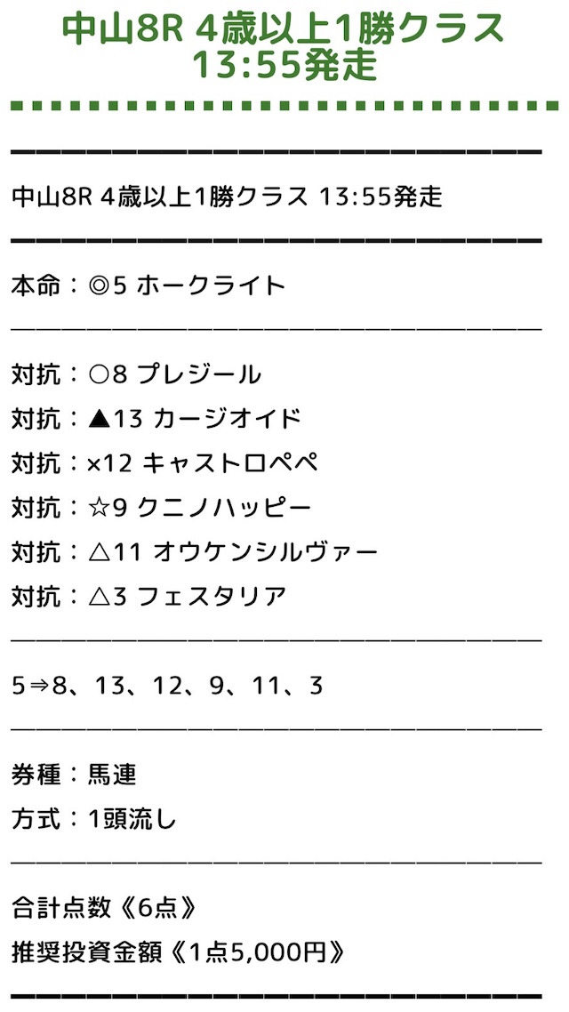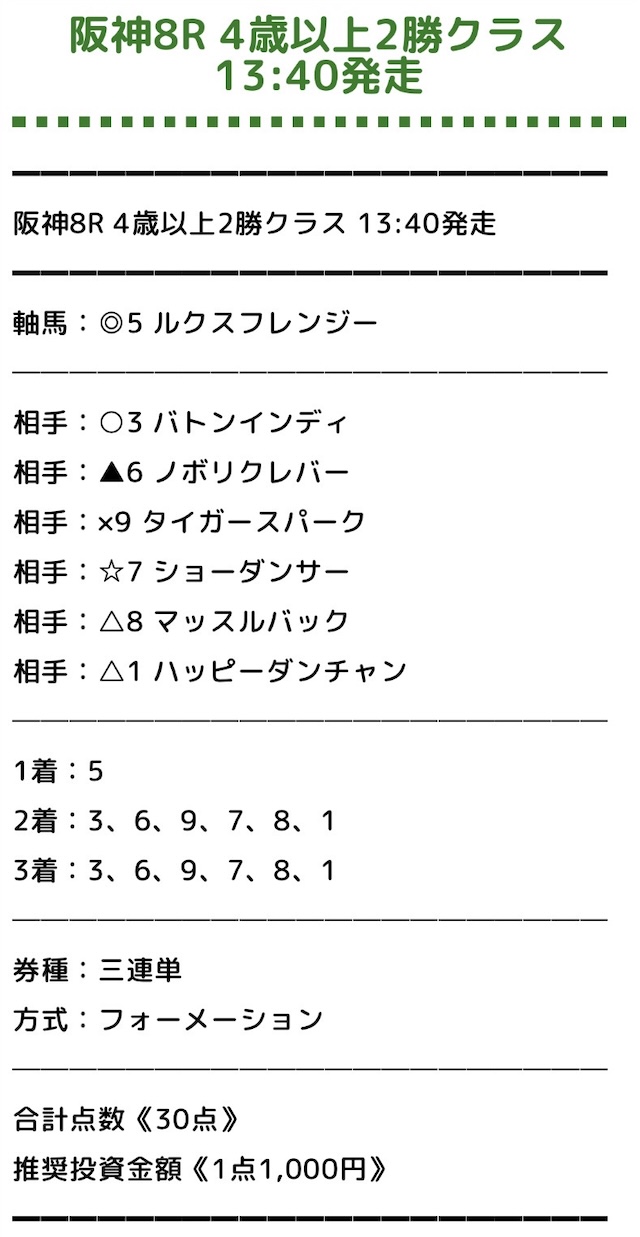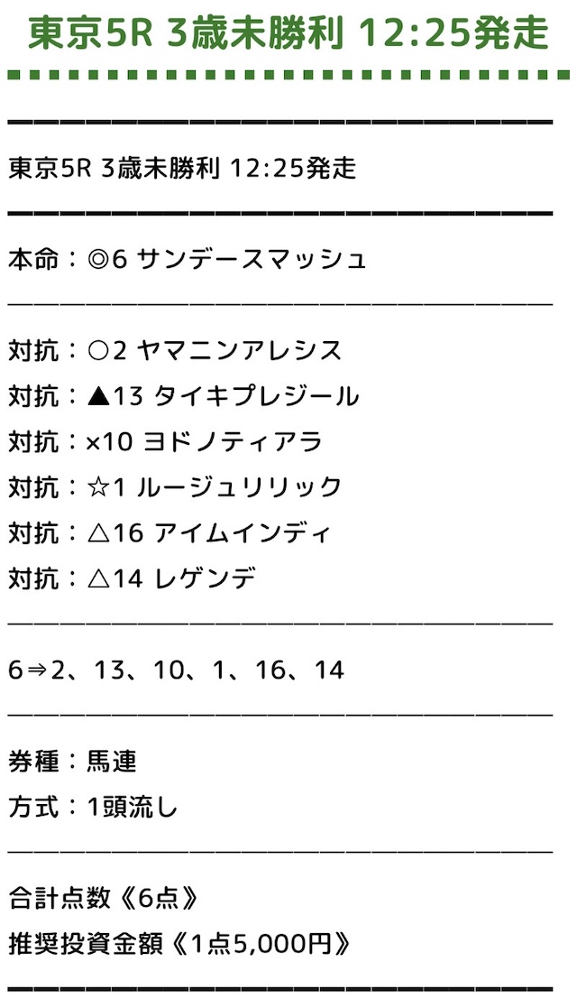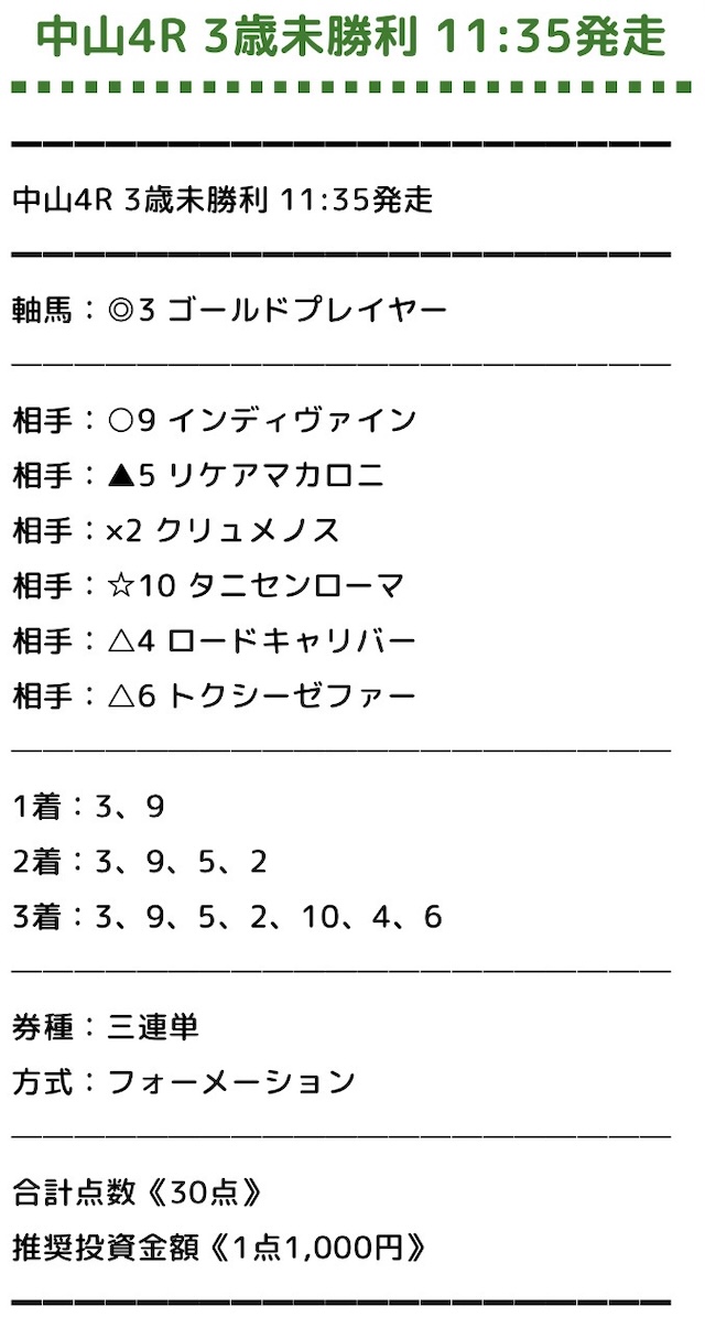 未勝利戦で勝ちました。精度は素直にすごい。無料の三連複万馬券計画、買い目も無理なくて助かった。