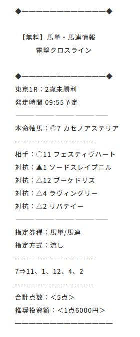 登録後すぐに無料予想を受け取れるので、気になる方はぜひ一度試してみてください!