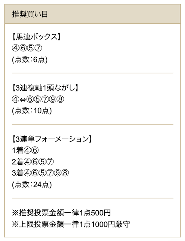 買い目を見ると先行馬を優先している訳ではなく人気を重視した順当な選出の印象があります。
