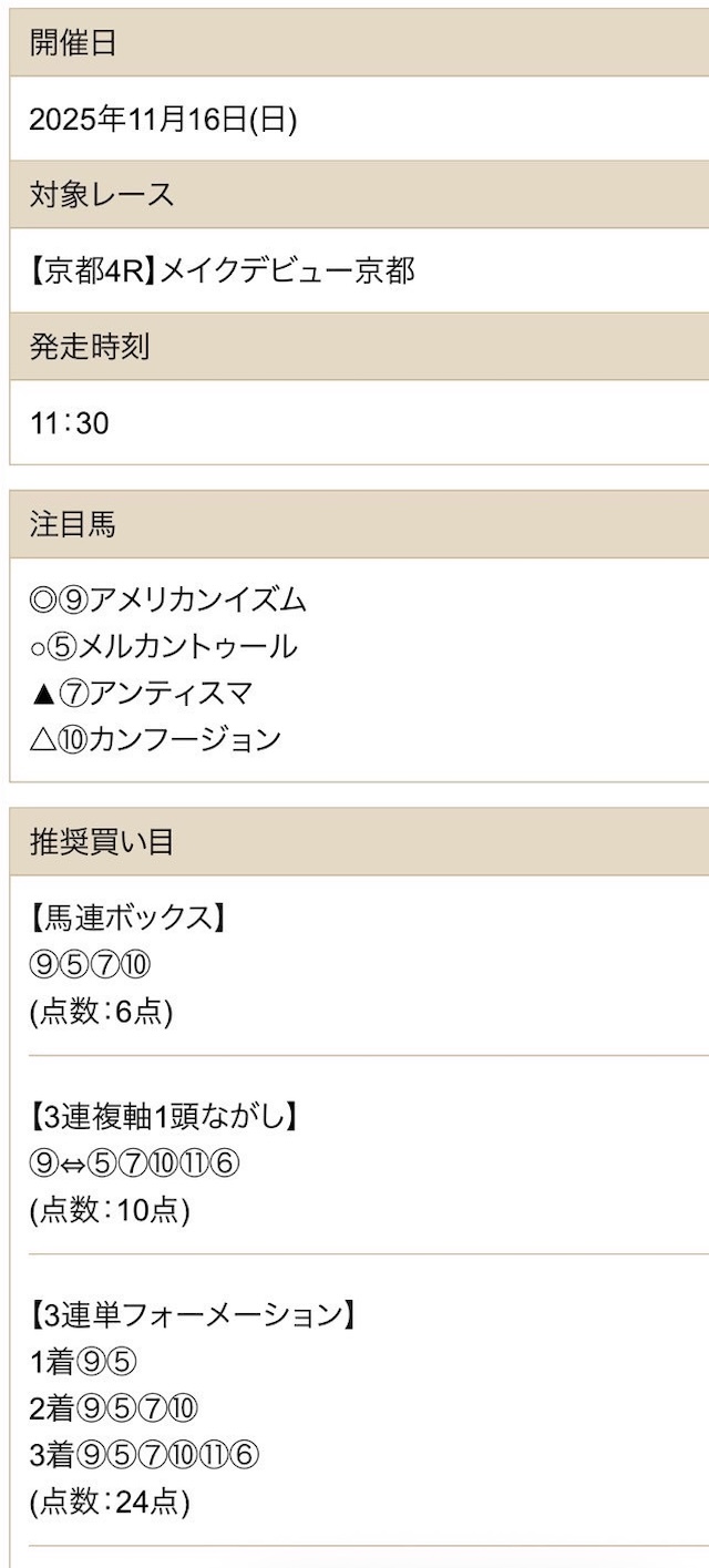いずれにせよ、あまり結果を残せていない印象なので、東京競馬場の予想が公開された時は参加を見送るというのも1つの手と言えるでしょう。