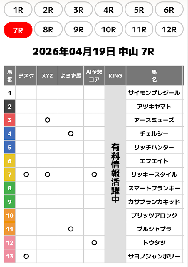 | XYZ | AIを用いた細かい分析が得意 穴予想特化型 |