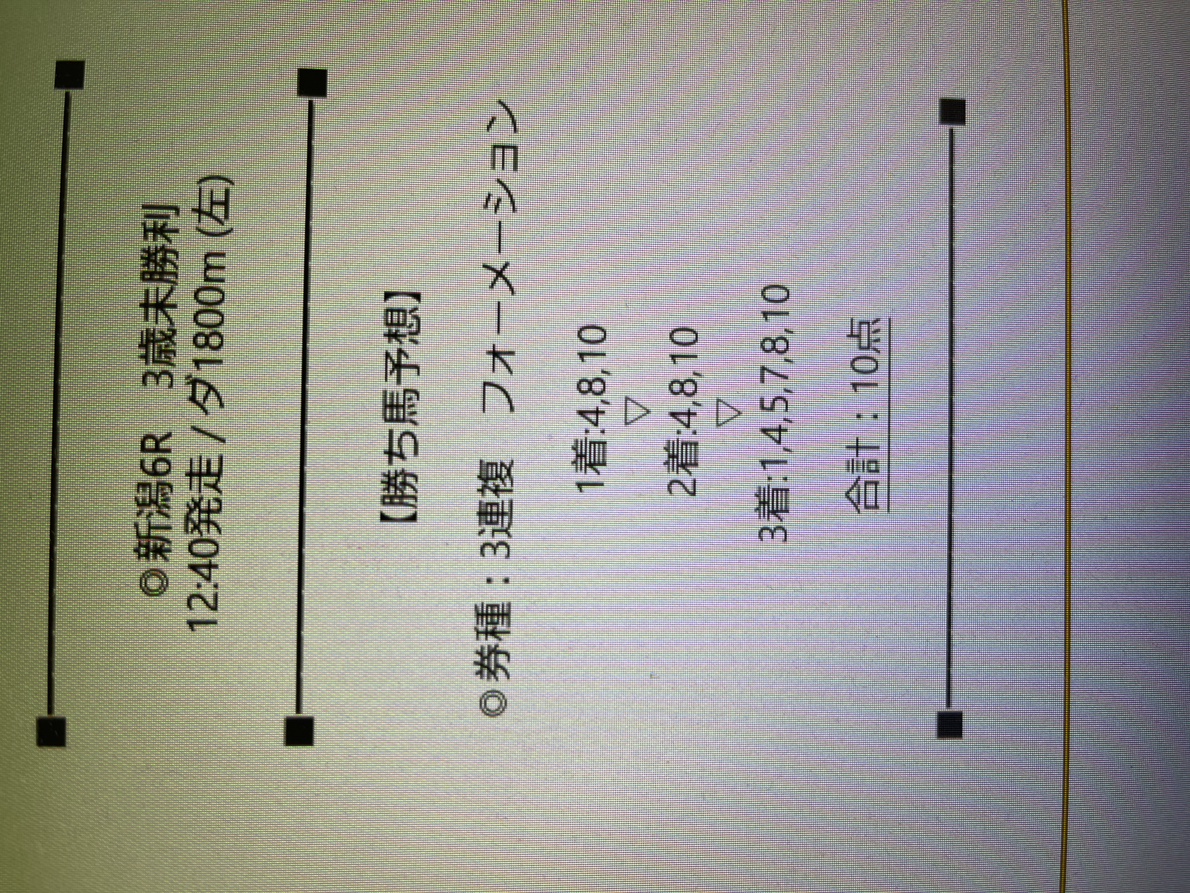 今日のポイント情報、新潟6R的中!!私は500円で買ってたので10万以上の儲けです笑