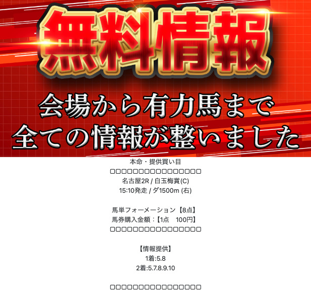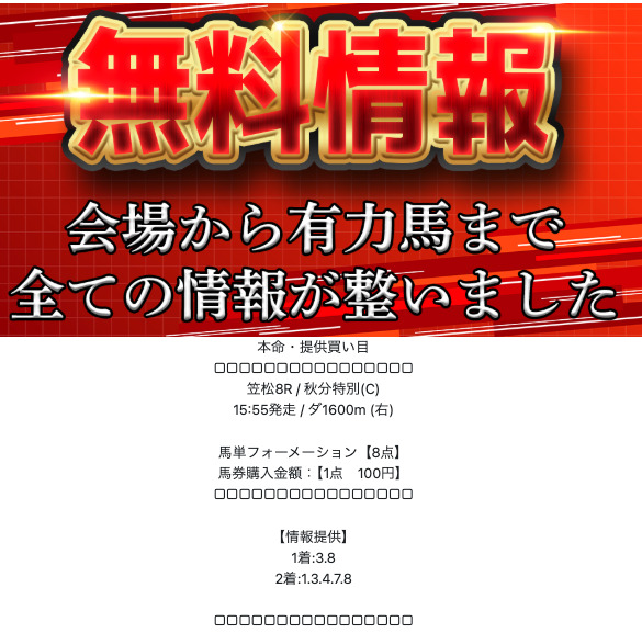 無料予想はLINEで無料で友だち追加すればすぐに受取可能。