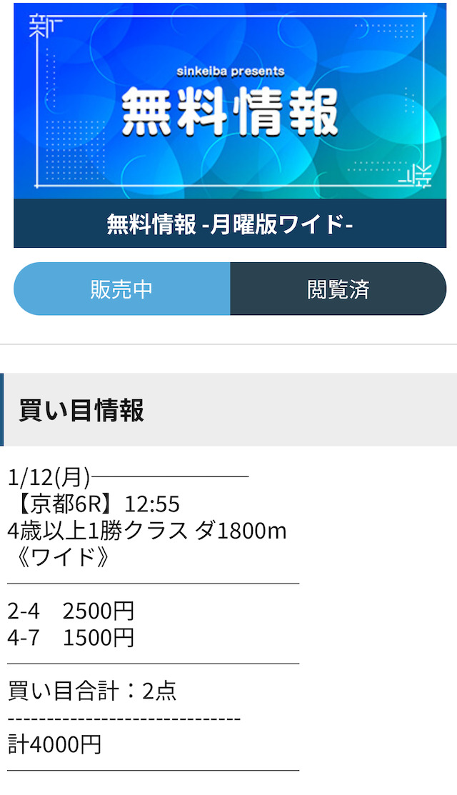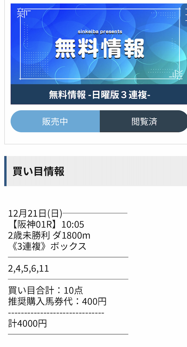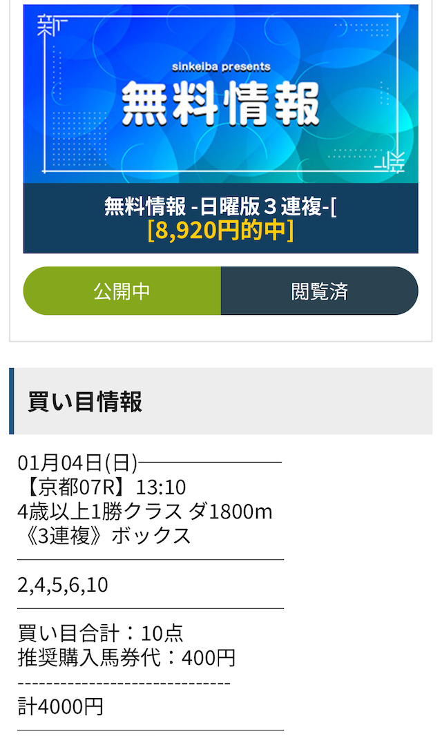 シンケイバの無料予想を開始