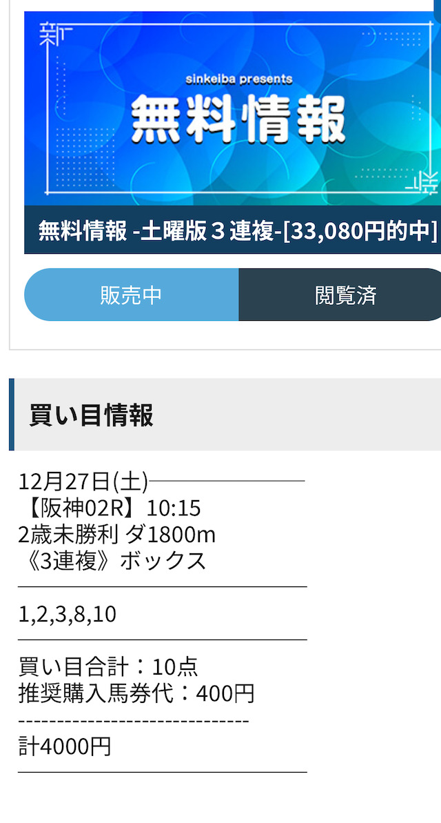 それでは、シンケイバの無料予想を検証していきます。