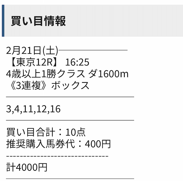 とはいえ情報料金を上回る収支を残した点は評価でき、安定性よりも「一撃」を求める層には魅力のある内容といえるでしょう。