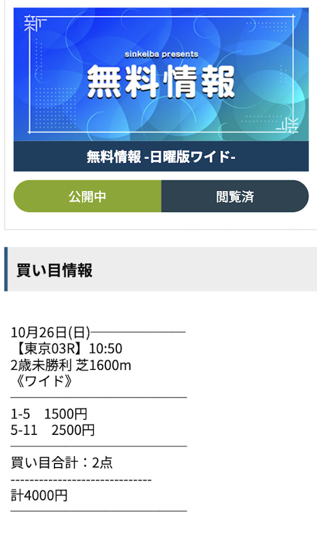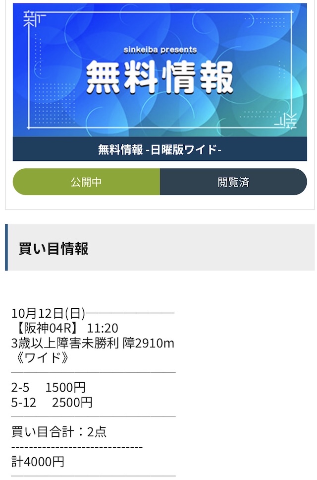 シンケイバを検証してきましたが、無料予想・有料予想ともに最高の結果を残してくれました。