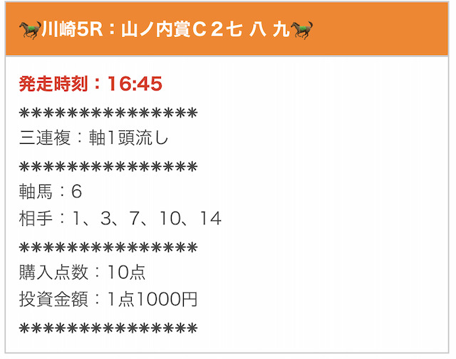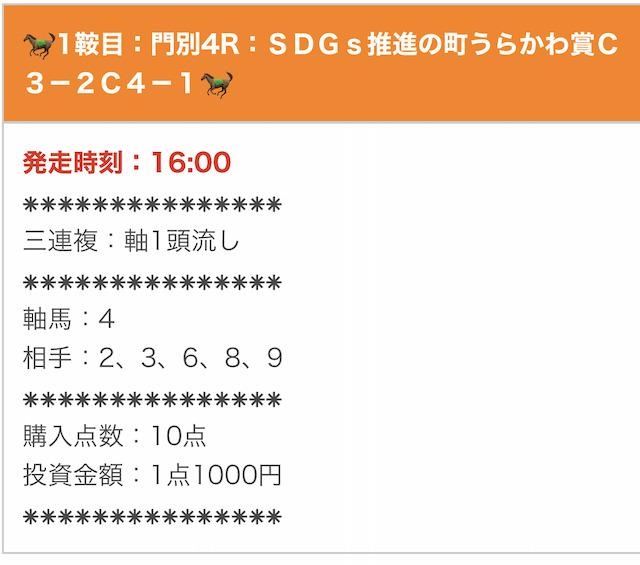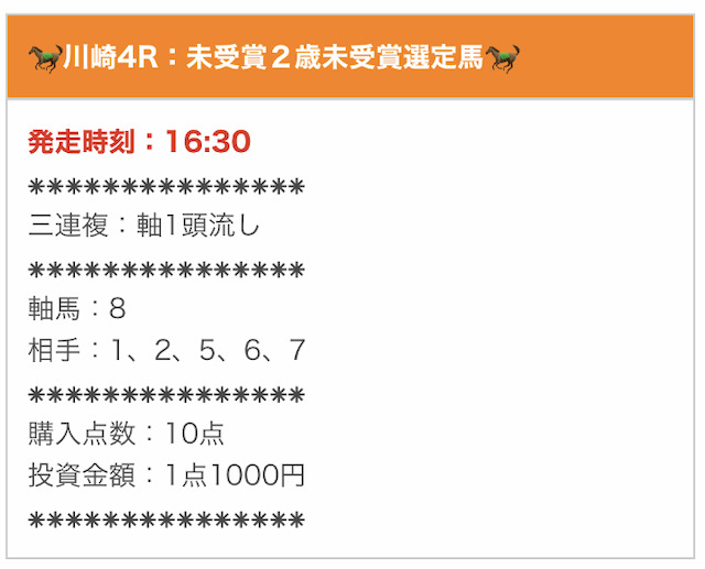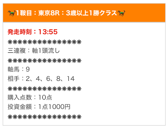 無料予想とは思えないほど素晴らしい成績を残しています。