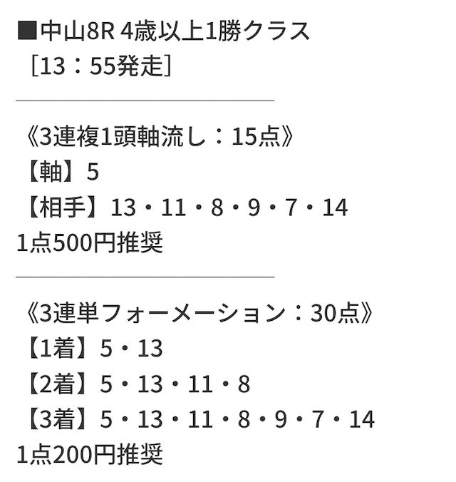 (実際に購入した有料予想の買い目)