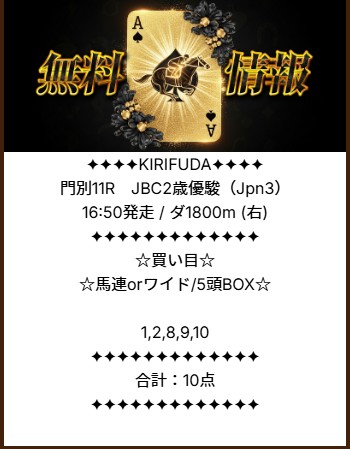そんなチャンスが当たり前のように訪れるキリフダの無料予想は利用しないと損と言えるでしょう。