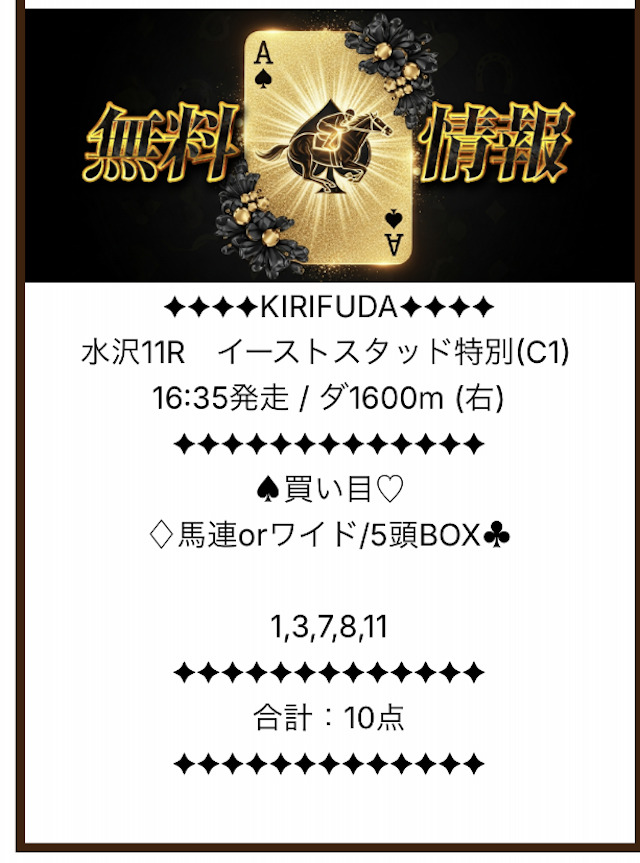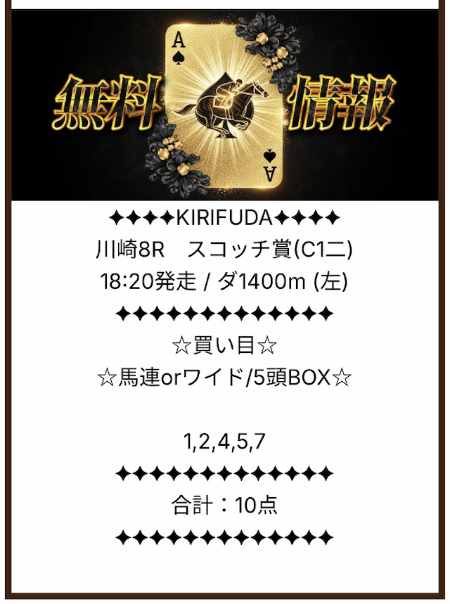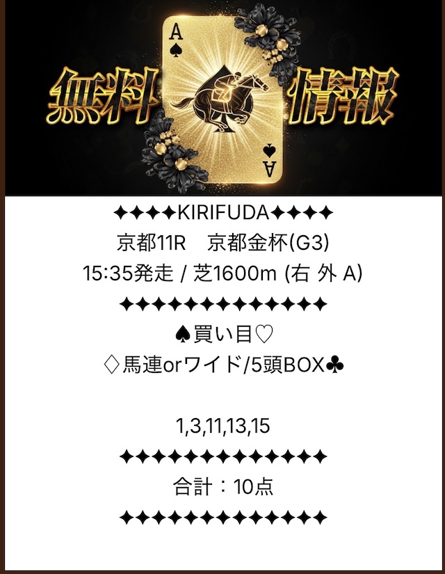 果たして、キリフダの無料予想はどれほどの成績を残すのか。