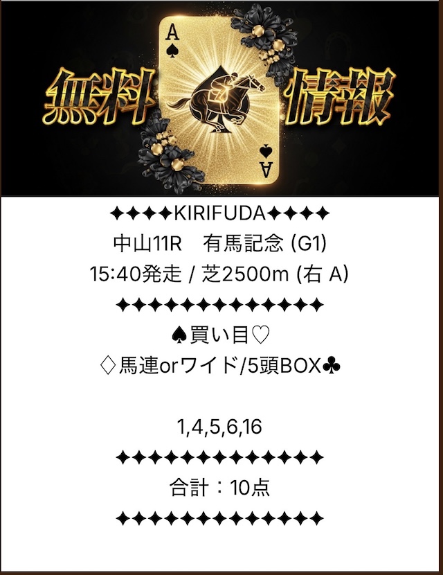 キリフダの無料予想は中央競馬を得意としているため、有料予想と組み合わせると効果は倍増。