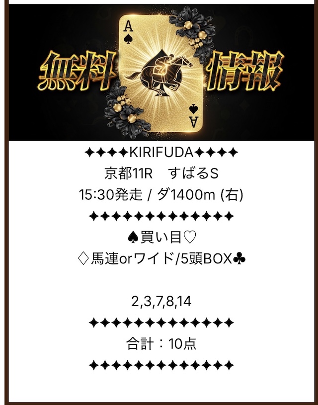 今回、キリフダが公開する予想に参加した結果、当たるサイトであることが分かりました。