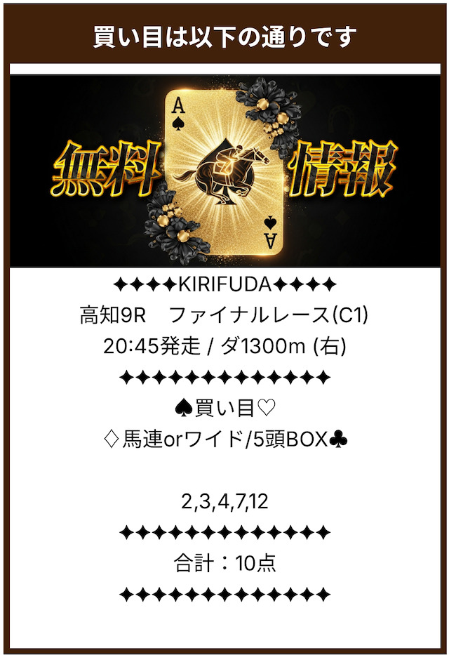 有料予想では荒れやすい高知競馬で的中させている