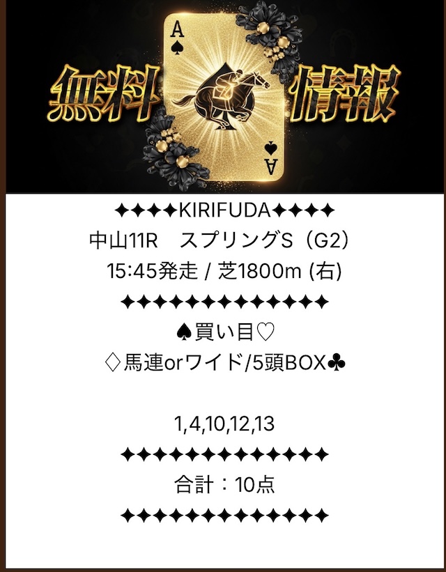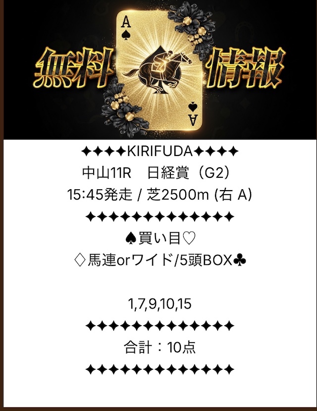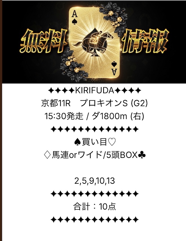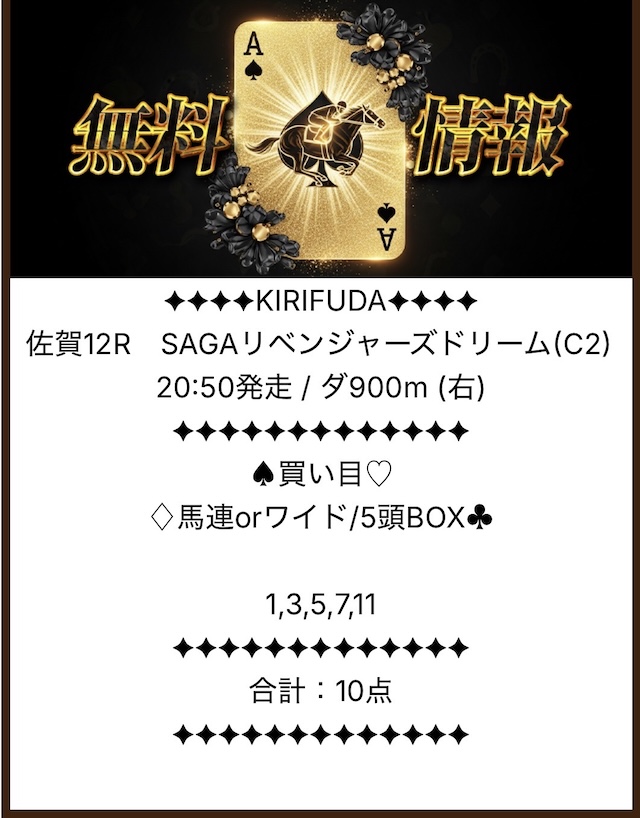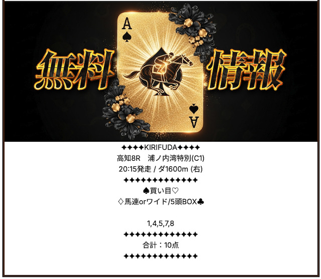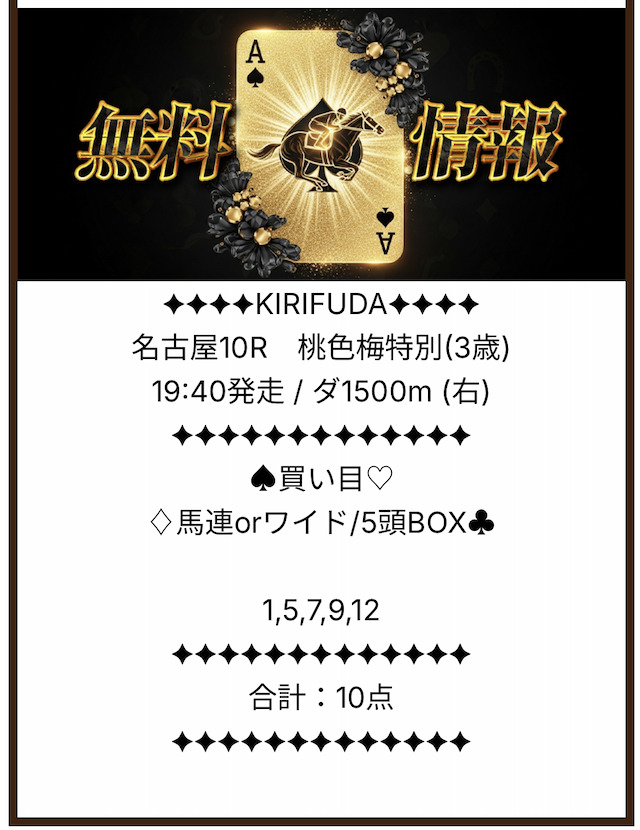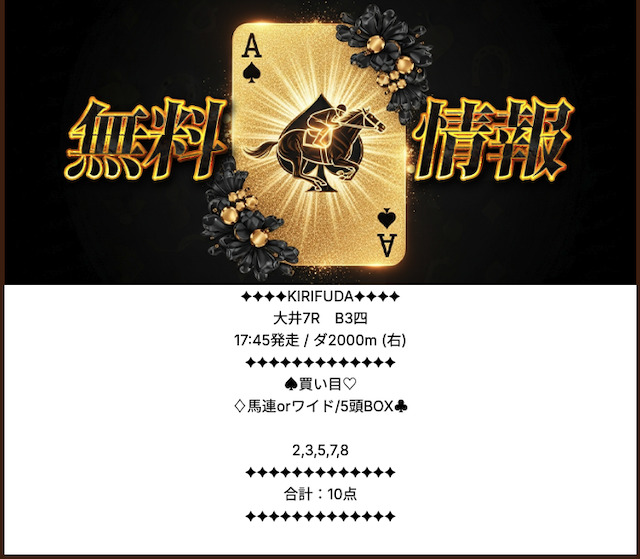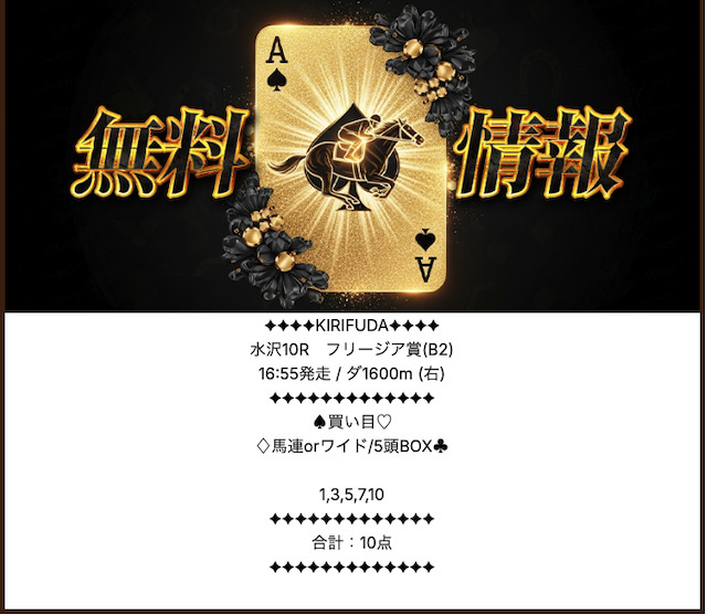 キリフダは地方競馬・中央競馬のいずれも無料予想にて公開しています。