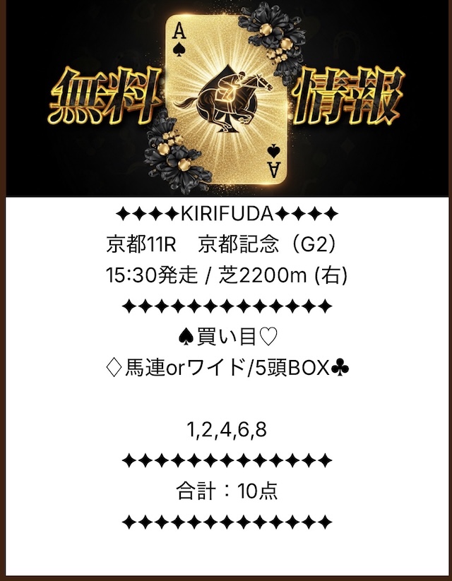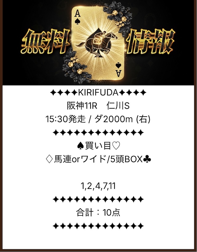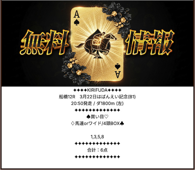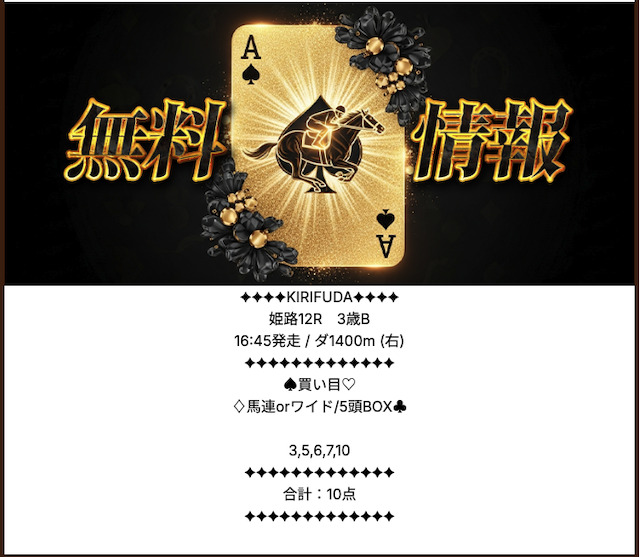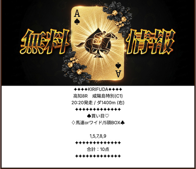 キリフダは地方競馬・中央競馬のいずれも無料予想にて公開しています。