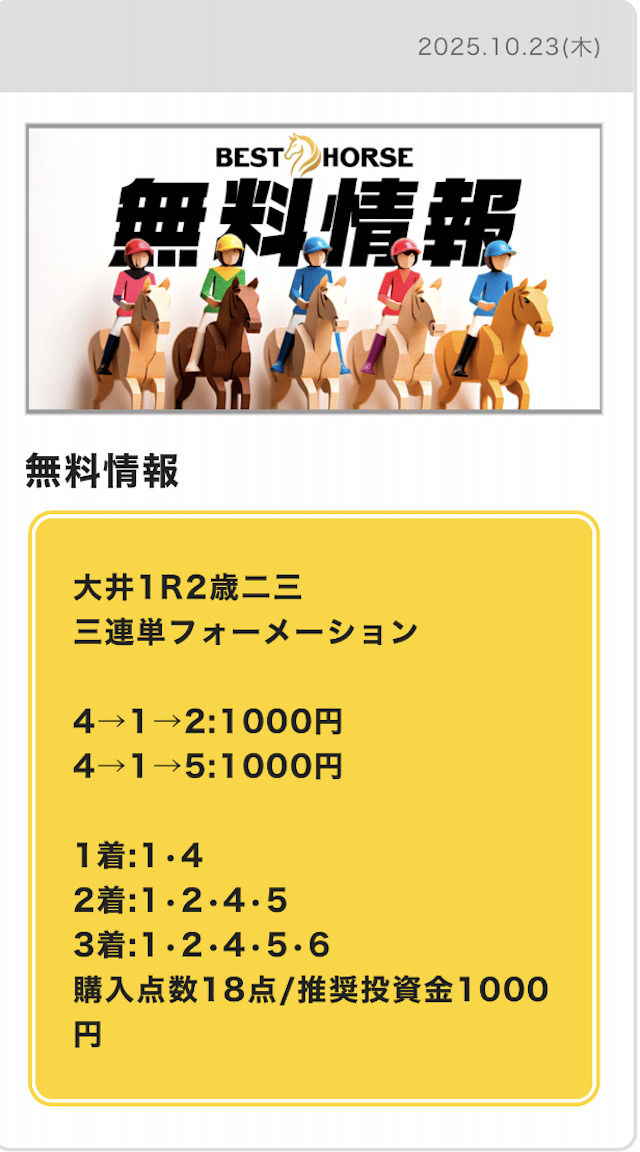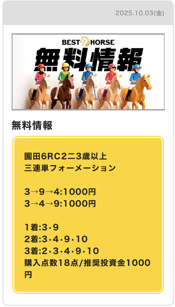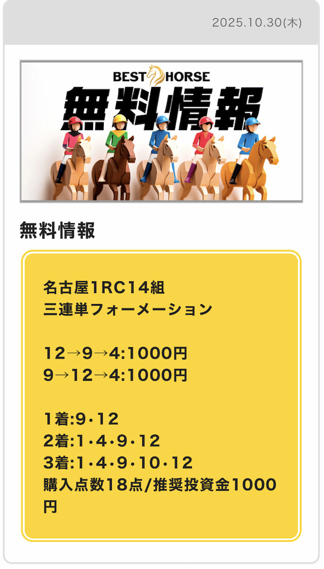 BESTHORSE(ベストホース)の予想結果の詳細をご紹介
