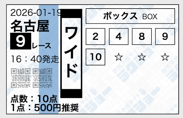 穴狙いのスタンスでありながら高い的中率を担保しているという事実から、ラクショーの予想力の高さが伺えますね。