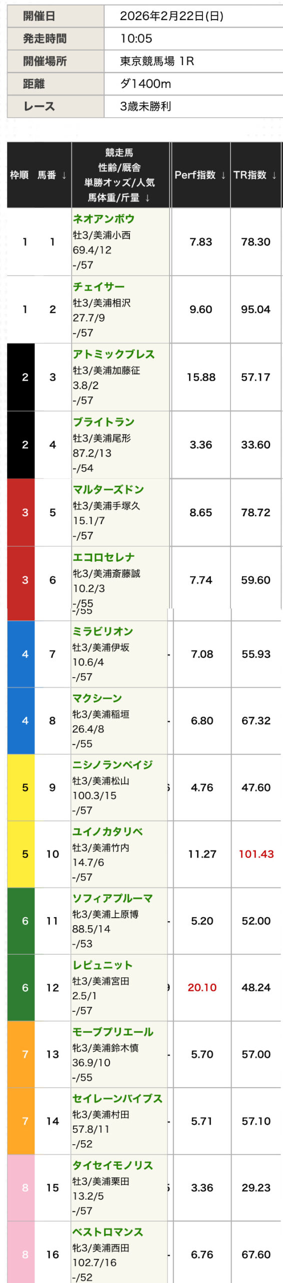 指数毎の表記になっているので、相対的に出走馬の能力を判断することができます。