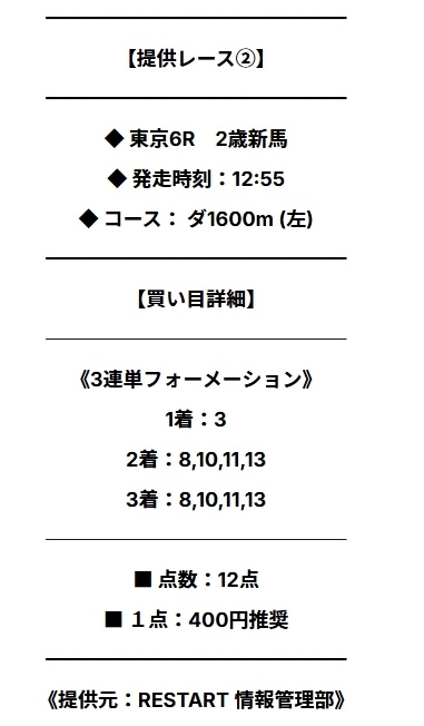 今回、検証するのは「リスタート」という競馬予想サイトです。