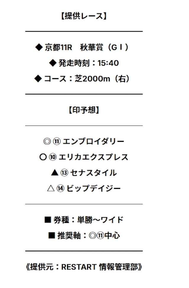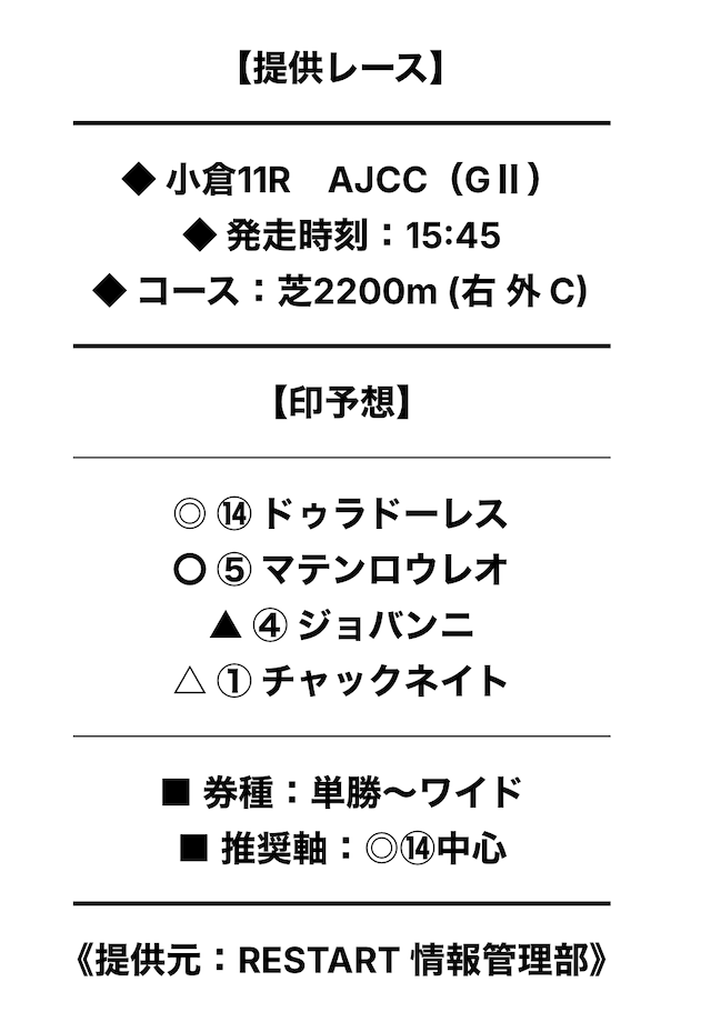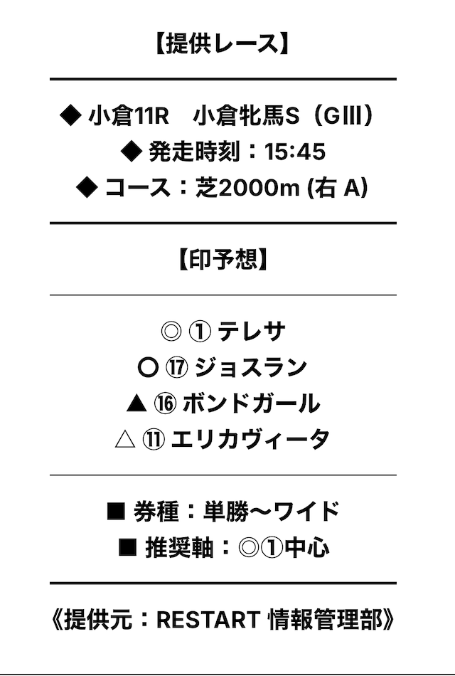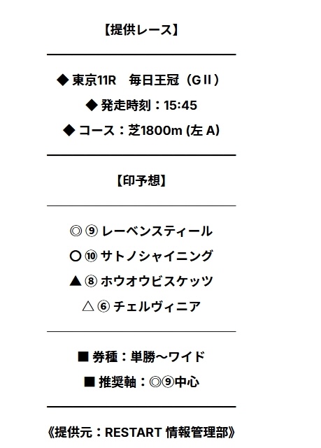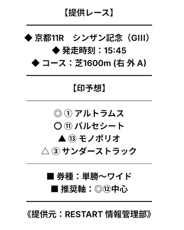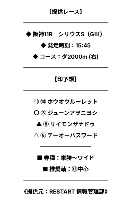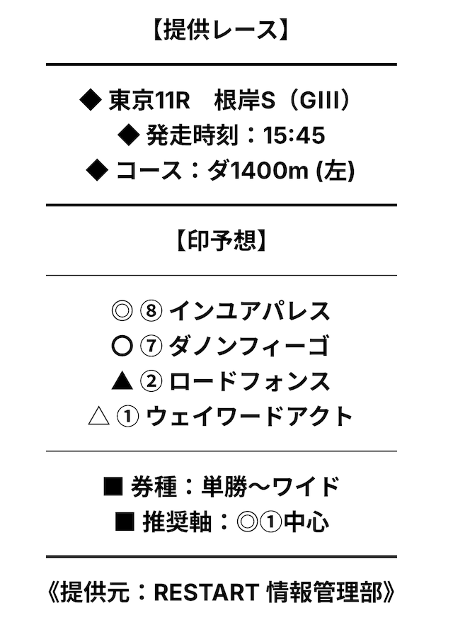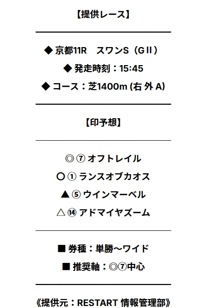 果たして、リスタートの無料予想はどれほどの成績を残すのか。