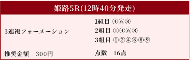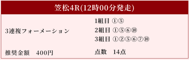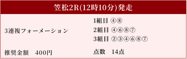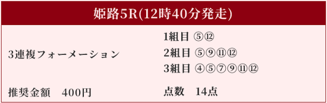 対抗にはオッズ1桁台の⑤⑧⑫を順当に選択するのが規定路線。