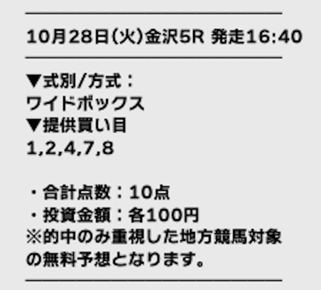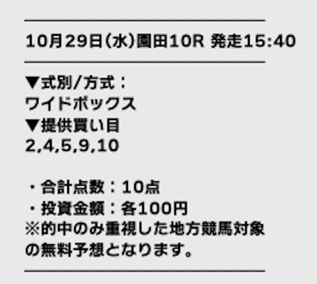 このサイト馬券代が3600円と安いけど、少点数で提供されるので配当も案外高くつくので良い