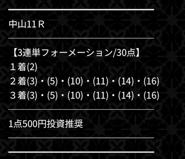 | 戦績 | 2戦2勝0敗 | 的中率 | 100% |
