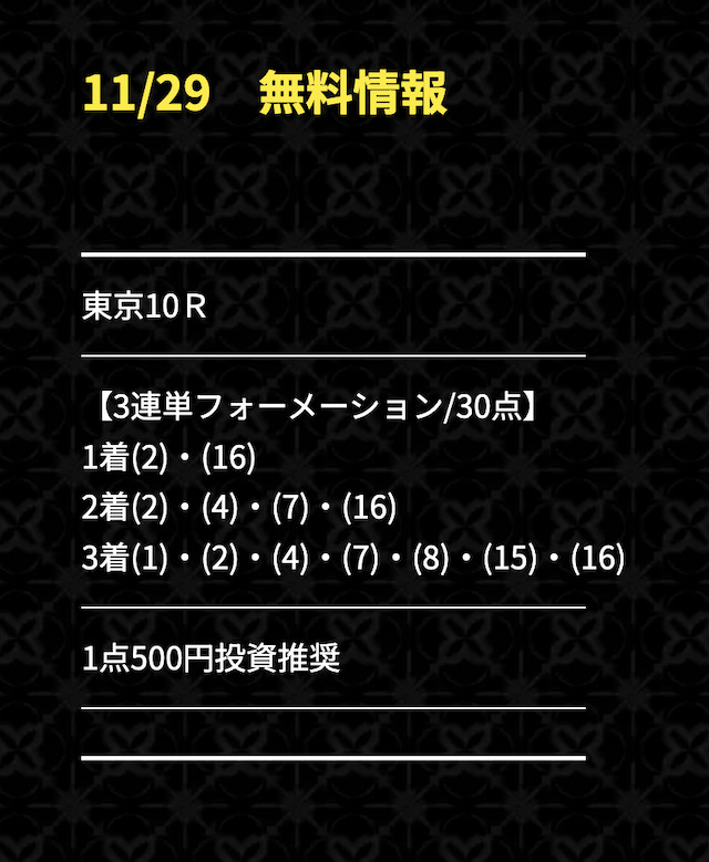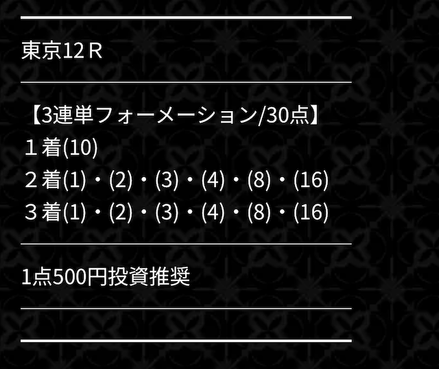| 有料予想の 戦績 | 2戦2勝0敗 | 2戦2勝0敗 | 2戦2勝0敗 | 4戦4勝0敗 | 2戦2勝0敗 | 2戦2勝0敗 | 2戦2勝0敗 | 4戦4勝0敗 | 2戦2勝0敗 | 3戦3勝0敗 | 3戦3勝0敗 | 3戦3勝0敗 | 3戦3勝0敗 | 2戦2勝0敗 | 2戦2勝0敗 | 2戦2勝0敗 | 2戦2勝0敗 | 2戦2勝0敗 | 2戦2勝0敗 | 2戦2勝0敗 | 2戦2勝0敗 | 2戦2勝0敗 | 2戦2勝0敗 | 2戦2勝0敗 | 2戦2勝0敗 | 2戦2勝0敗 | 2戦2勝0敗 | 2戦2勝0敗 | 2戦2勝0敗 | 2戦2勝0敗 | 2戦2勝0敗 | 2戦2勝0敗 | 2戦2勝0敗 | 2戦2勝0敗 | 2戦2勝0敗 | 2戦2勝0敗 | 2戦2勝0敗 | 2戦2勝0敗 | 2戦2勝0敗 | 2戦2勝0敗 | 2戦2勝0敗 | 2戦2勝0敗 | 2戦2勝0敗 | 2戦2勝0敗 | 2戦2勝0敗 | 1戦1勝0敗 | 1戦1勝0敗 | 2戦2勝 | 1戦1勝0ハイ | 2戦2勝0敗 | 1戦1勝0敗 | 1戦1勝0敗 | 1戦1勝0敗 | 1戦1勝0敗 | 1戦1勝0敗 | 1戦1勝0敗 | 1戦1勝0敗 | 1戦1勝0敗 | 1戦1勝0敗 | 1戦1勝0敗 | 2戦2勝0ハイ | 1戦1勝0敗 | 3戦3勝0敗 |
