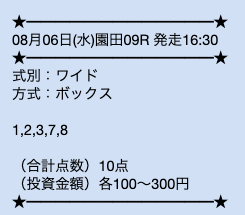 | 無料予想 | 9.9/10点 | 10/10点 | 10/10点 | 10/10点 | 9.9/10点 |
