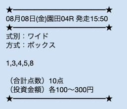 | 有料予想 | 9.9/10点 | 9.9/10点 | 9.9/10点 | 10/10点 | 10/10点 |