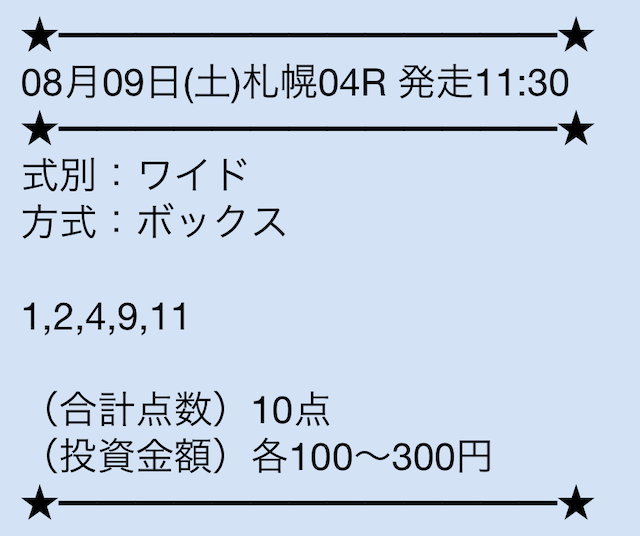 | 有料予想 | 9.9/10点 | 9.9/10点 | 9.8/10点 | 10/10点 | 9.9/10点 |