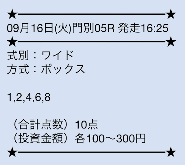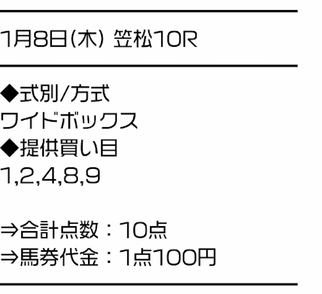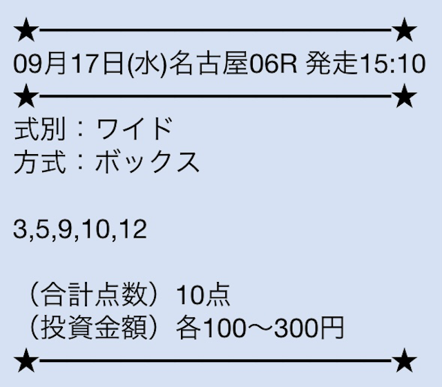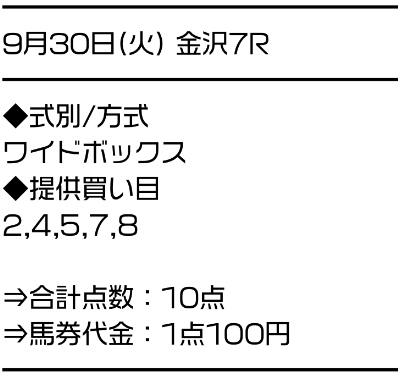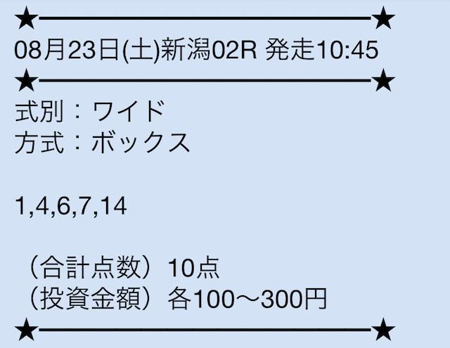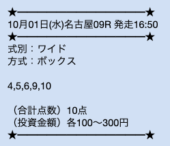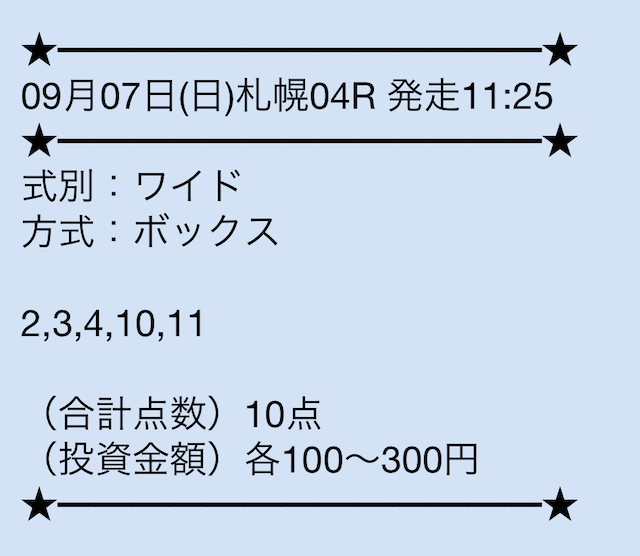 | 無料予想 | 9.9/10点 | 10/10点 | 9.9/10点 | 10/10点 | 10/10点 |