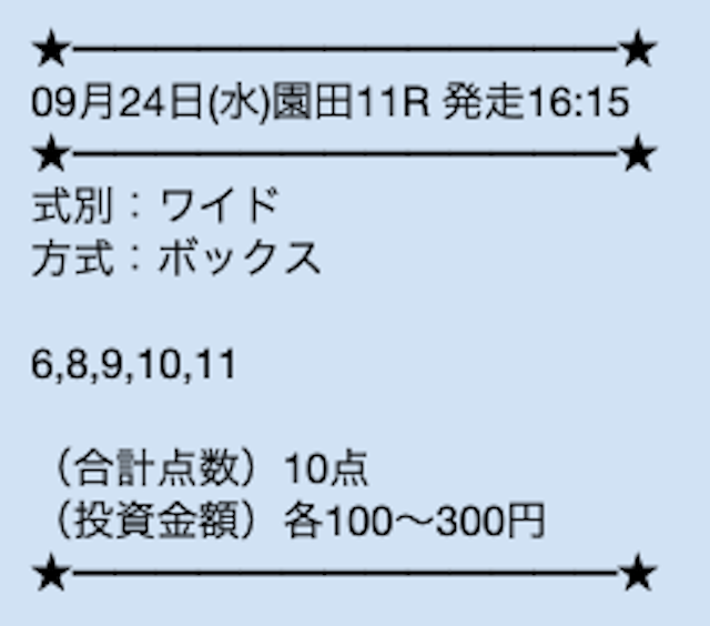 | 無料予想 | 10/10点 | 10/10点 | 9.9/10点 | 10/10点 | 10/10点 |