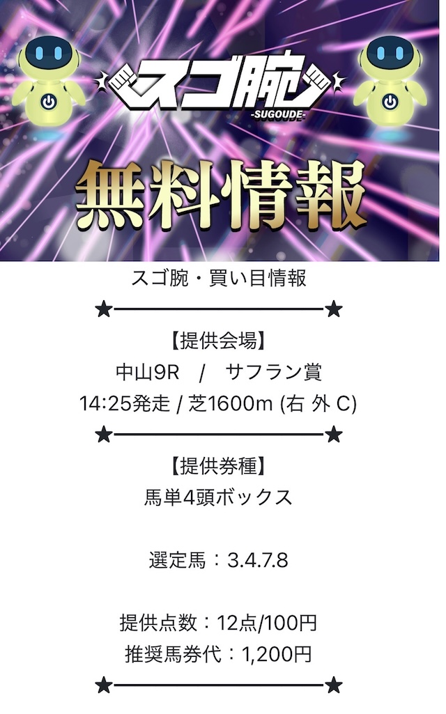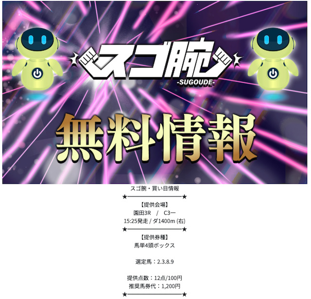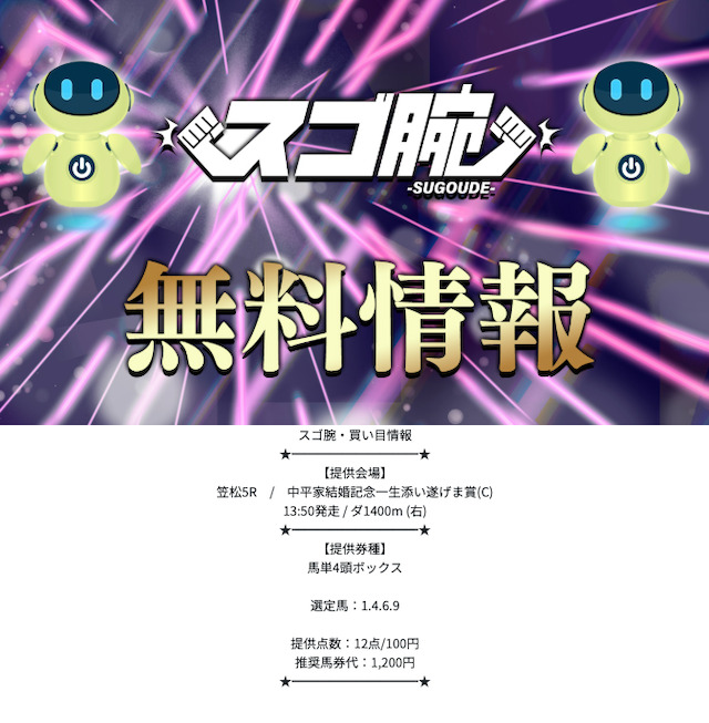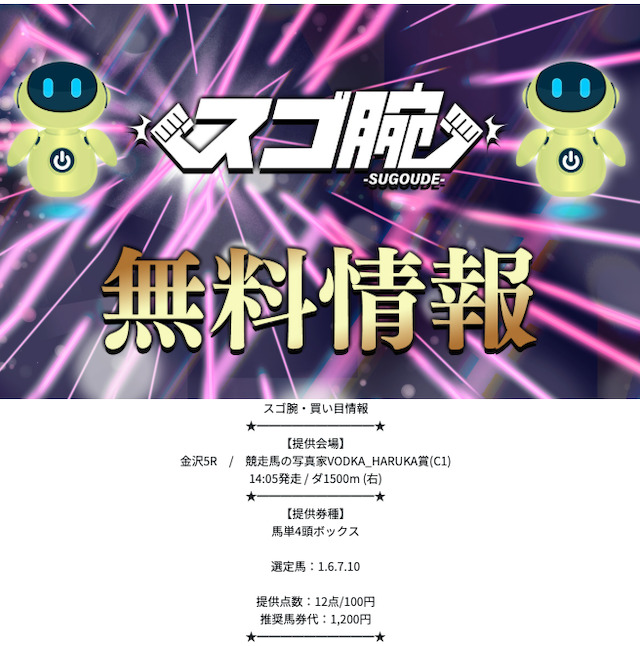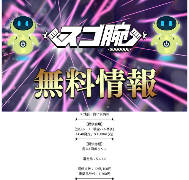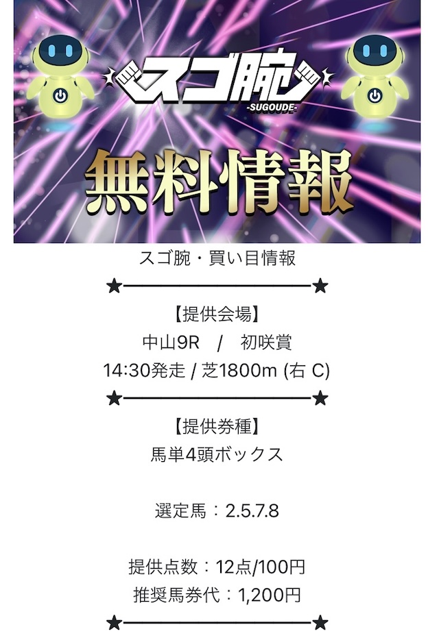 | 無料予想 | 9.9/10点 | 9.9/10点 | 10/10点 | 9.9/10点 | 10/10点 |