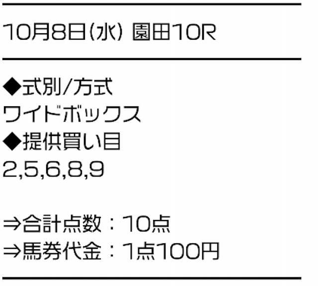 | 無料予想 | 10/10点 | 9.9/10点 | 10/10点 | 9.9/10点 | 9.9/10点 |