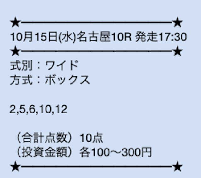 | 有料予想 | 9.9/10点 | 10/10点 | 9.9/10点 | 9.9/10点 | 10/10点 |