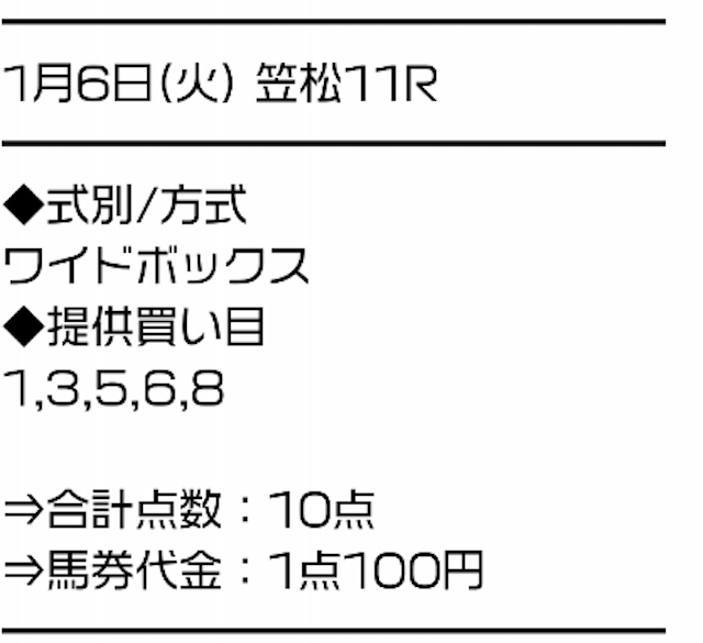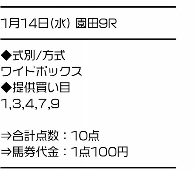 76% | 109% | ワイド 馬連 馬単 3連複 |